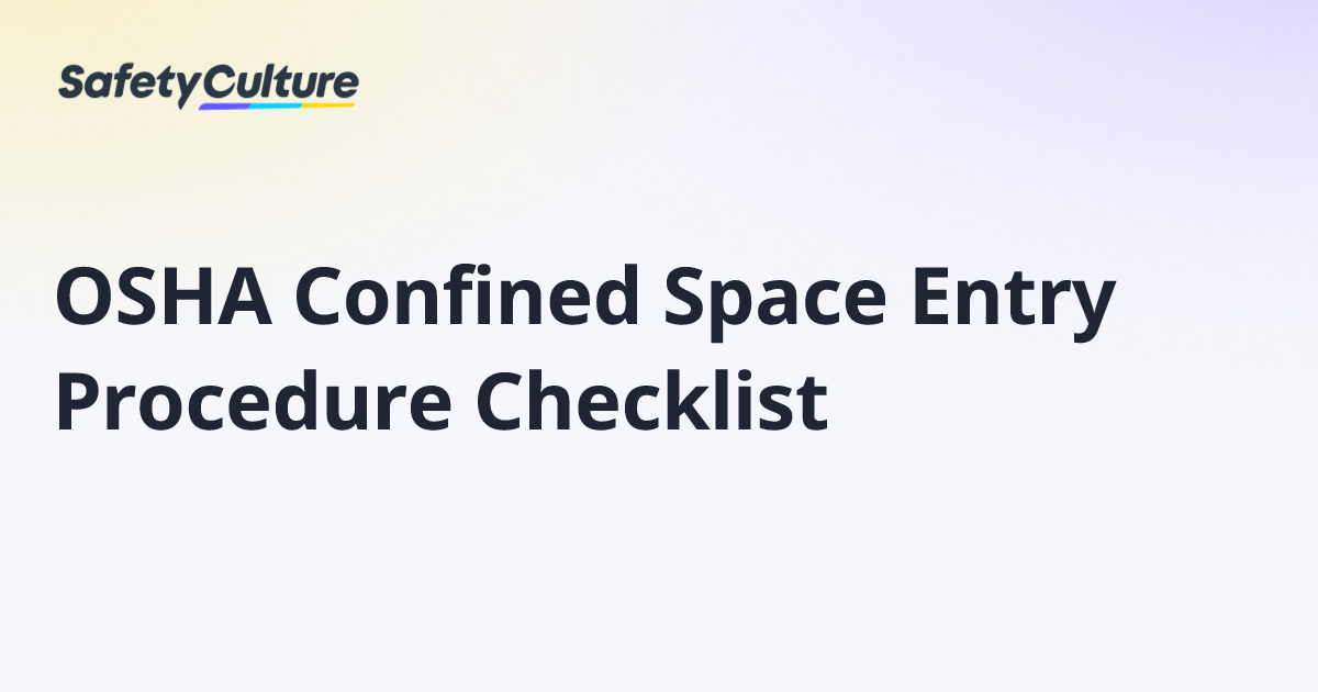 OSHA Confined Space Entry Procedure Checklist Free Template