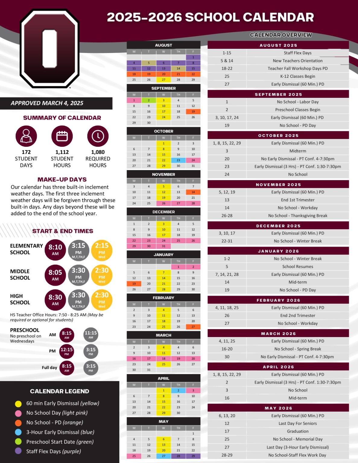 Calendar Adjustments for the 2023 24 Academic Year Oskaloosa Schools
