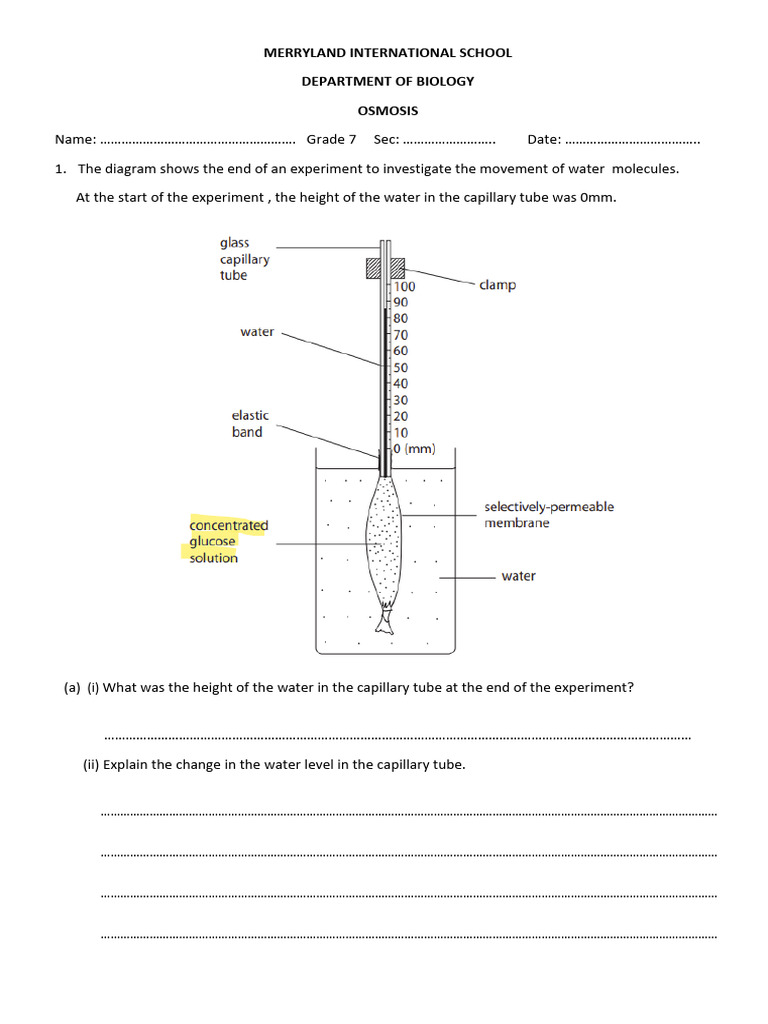 Osmosis Worksheet Answer Key Mr Croft Free Worksheets Samples