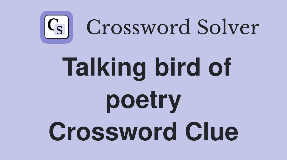 Talking bird of poetry Crossword Clue Answers Crossword Solver