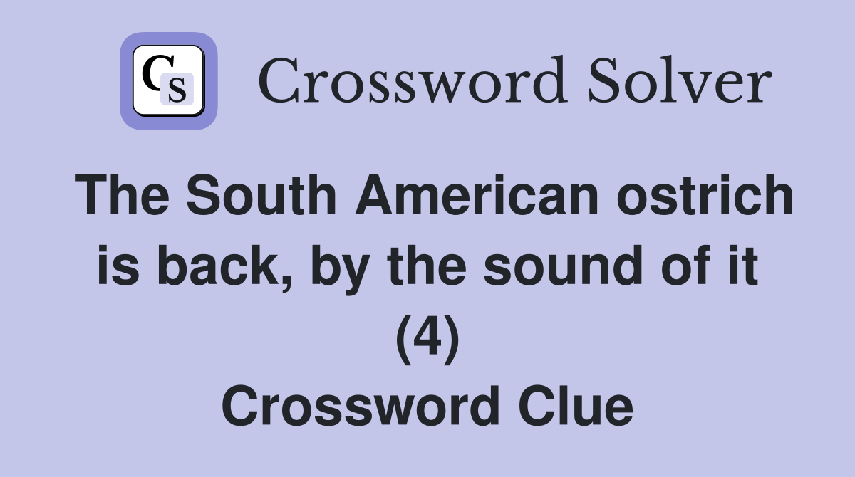 Ostrich like creatures (5) Crossword Clue Answers Crossword Solver