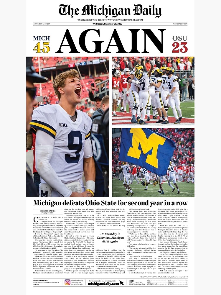 quot The Michigan Daily Front Cover 11/29/23 (Michigan vs OSU) quot Poster for