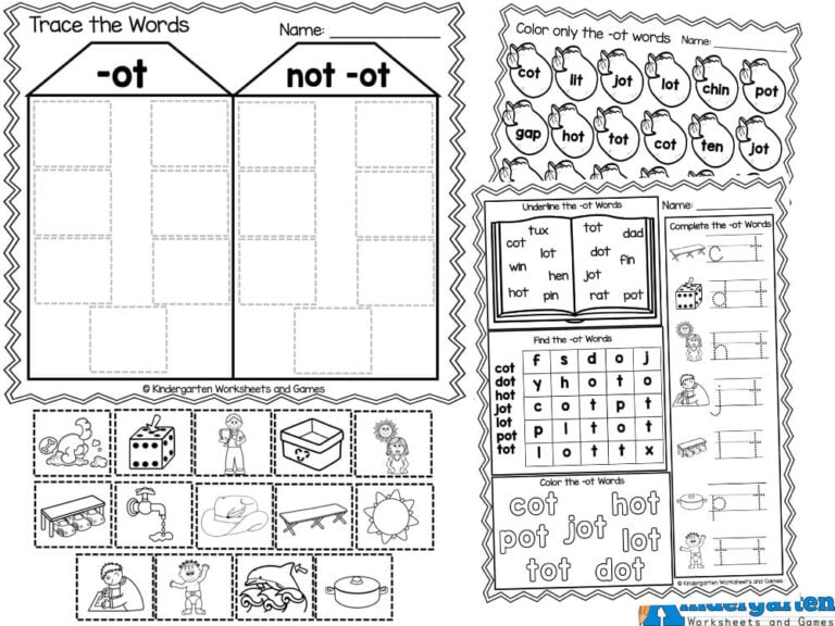 FREE Printable ot Word Family Worksheets for Kindergarten