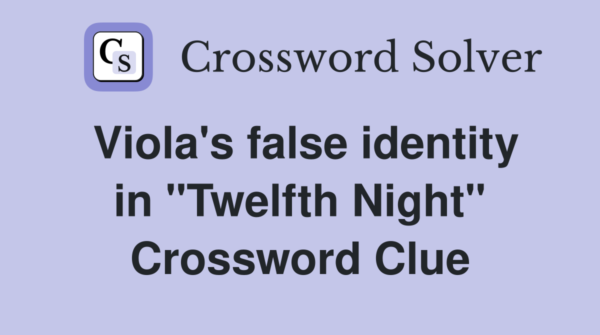 Viola #39 s false identity in quot Twelfth Night quot Crossword Clue Answers