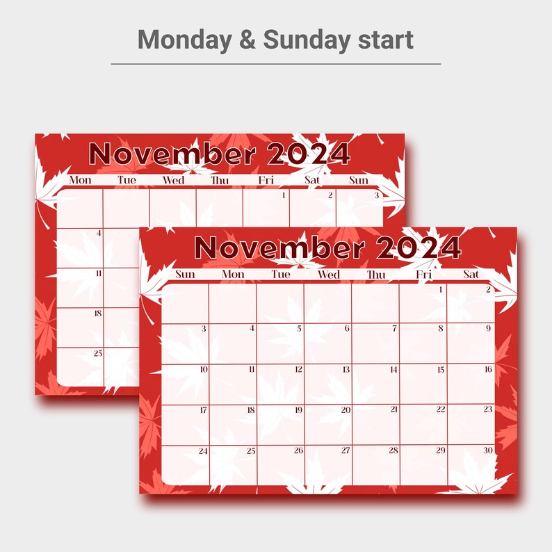 Editable November 2024 Printable Calendar Printable Monthly Digital