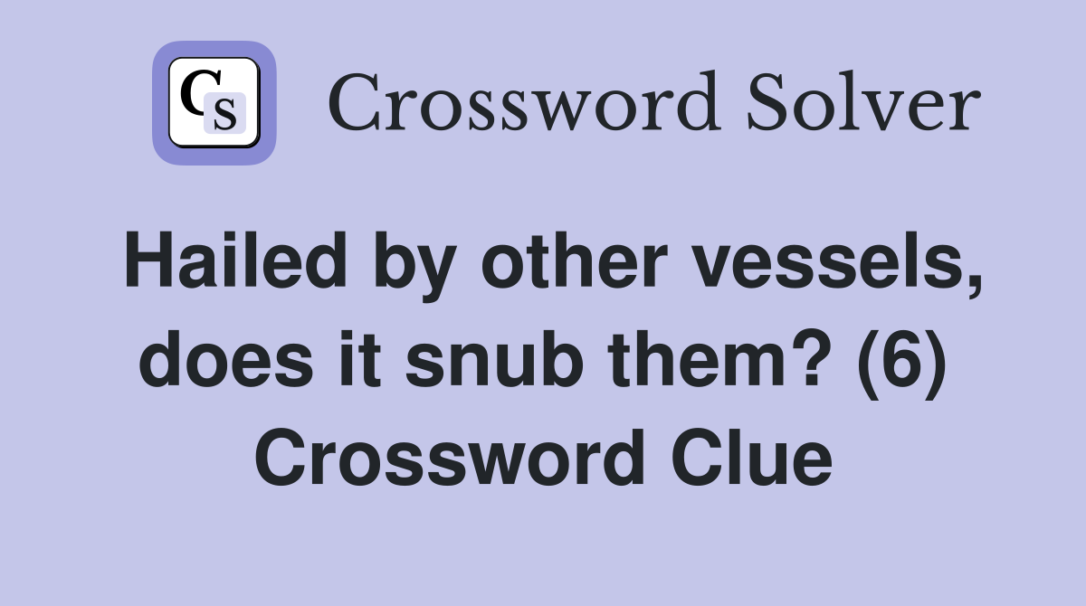Hailed by other vessels does it snub them? (6) Crossword Clue