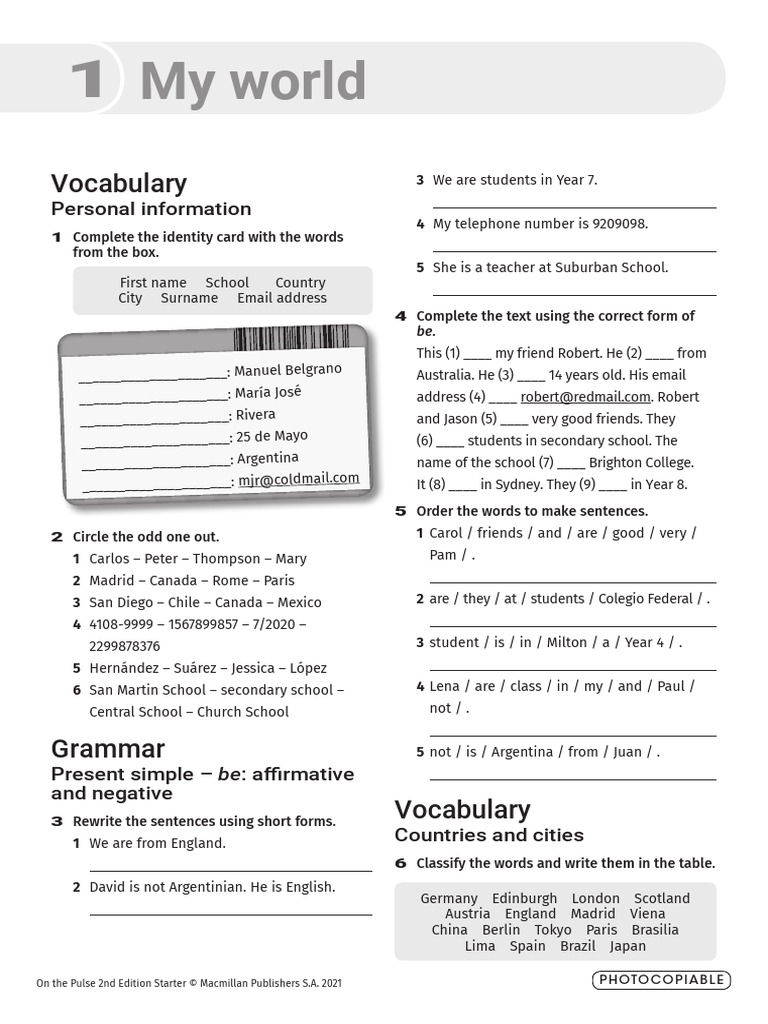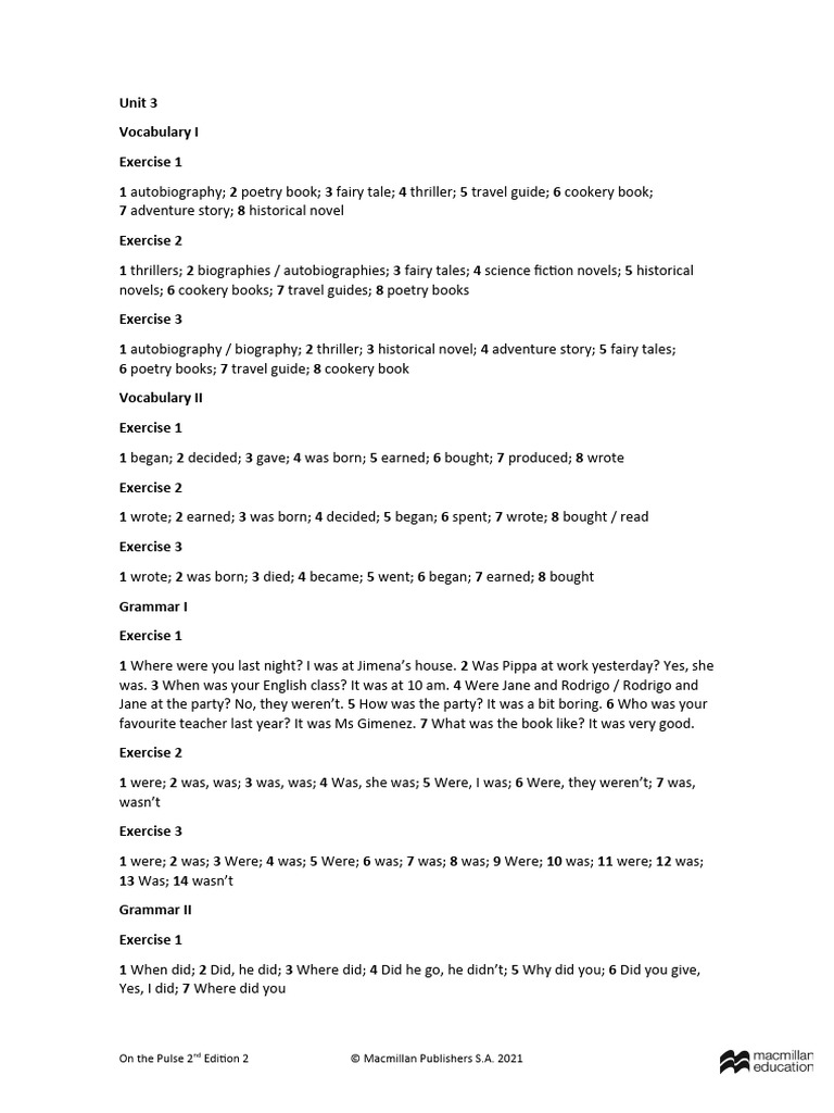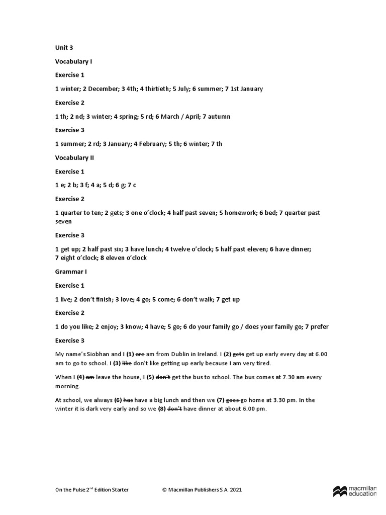 OTP2 Starter U3 Test Activity Bank Answer Key PDF Language