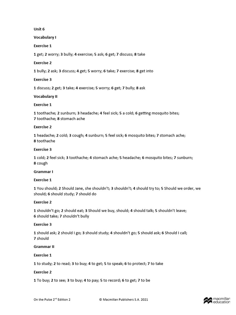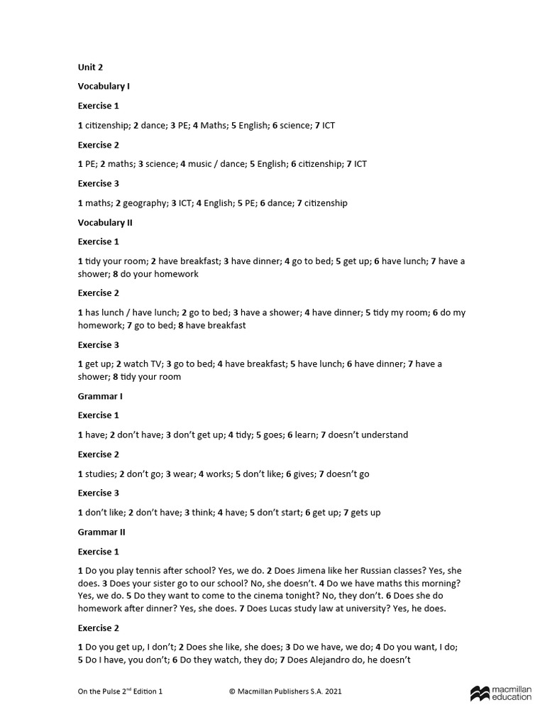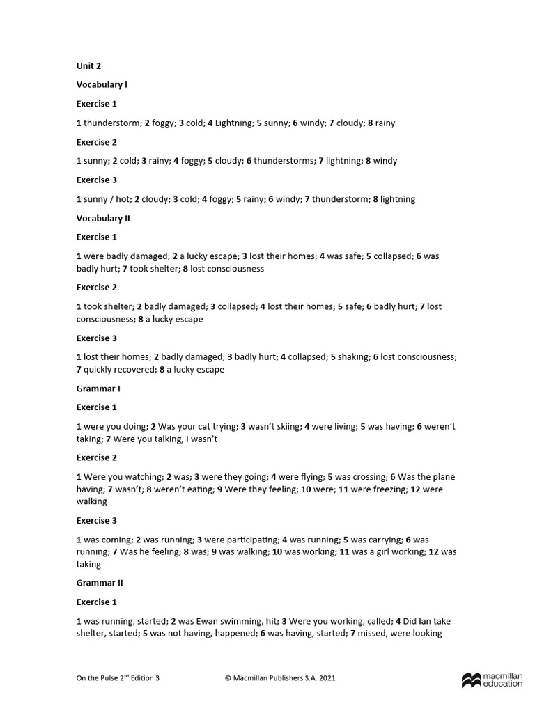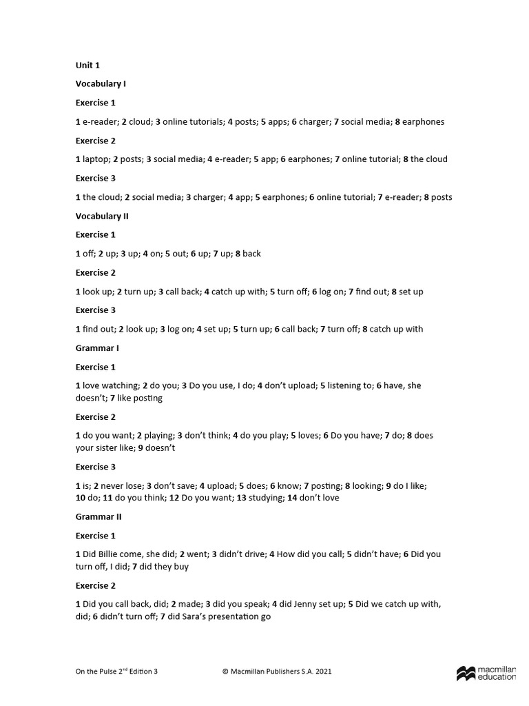 OTP2 Level 1 U2 Test activity bank Answer key PDF