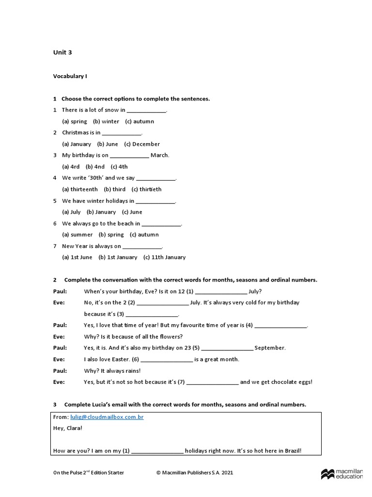 OTP2 Starter U3 Test Activity Bank PDF Valentine #39 s Day