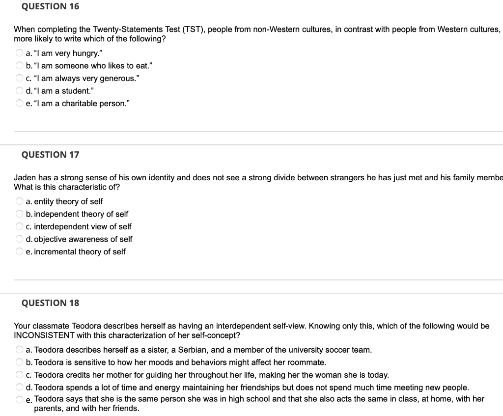 Solved When completing the Twenty Statements Test (TST) Chegg com