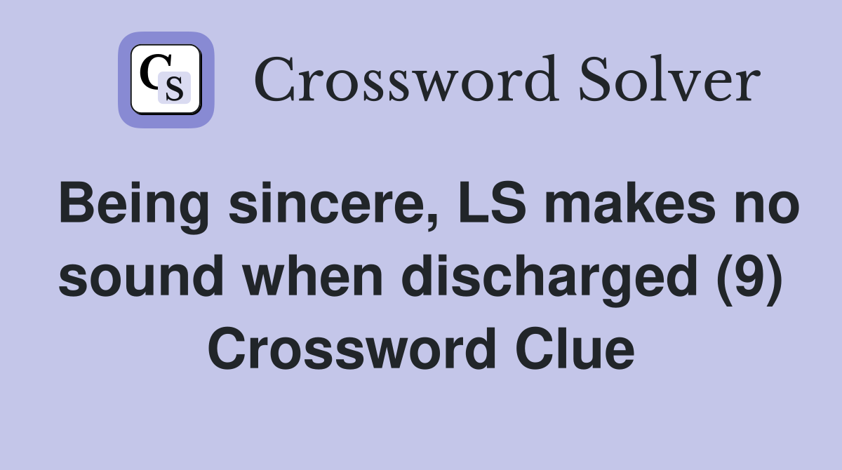 Being sincere LS makes no sound when discharged (9) Crossword Clue