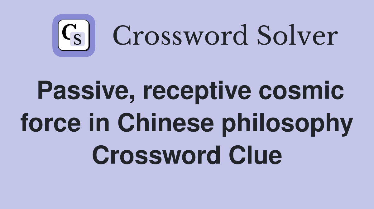 Passive receptive cosmic force in Chinese philosophy Crossword Clue