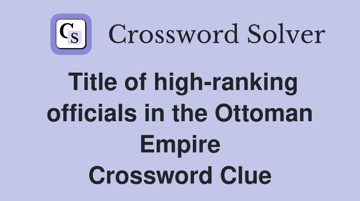 Former Ottoman official Crossword Clue Answers Crossword Solver