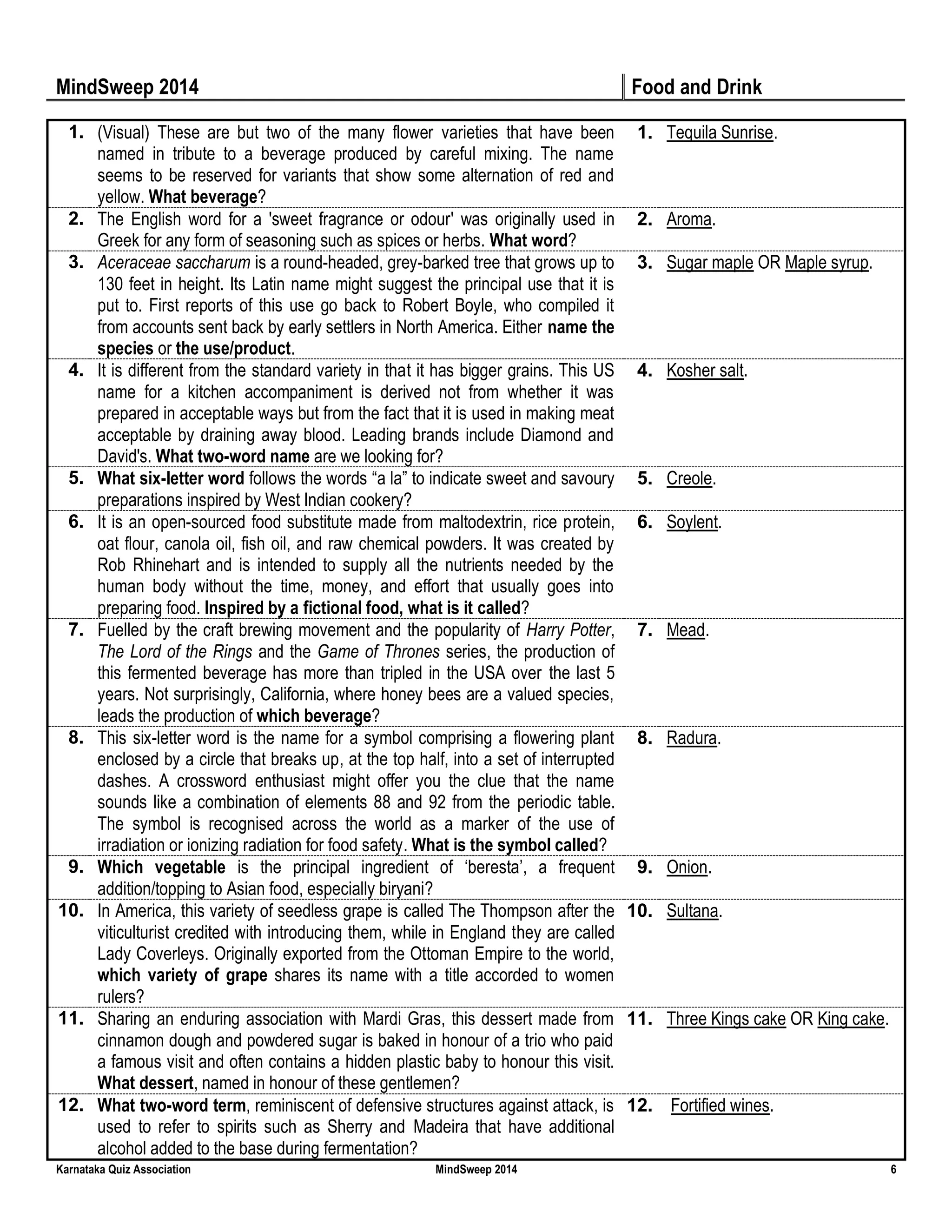 KQA MindSweep 2014 Part II Answer Key PDF