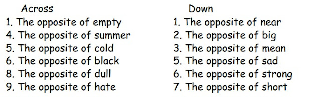 opposite crossword Atividades de ingles Aulas de inglês Aulas de