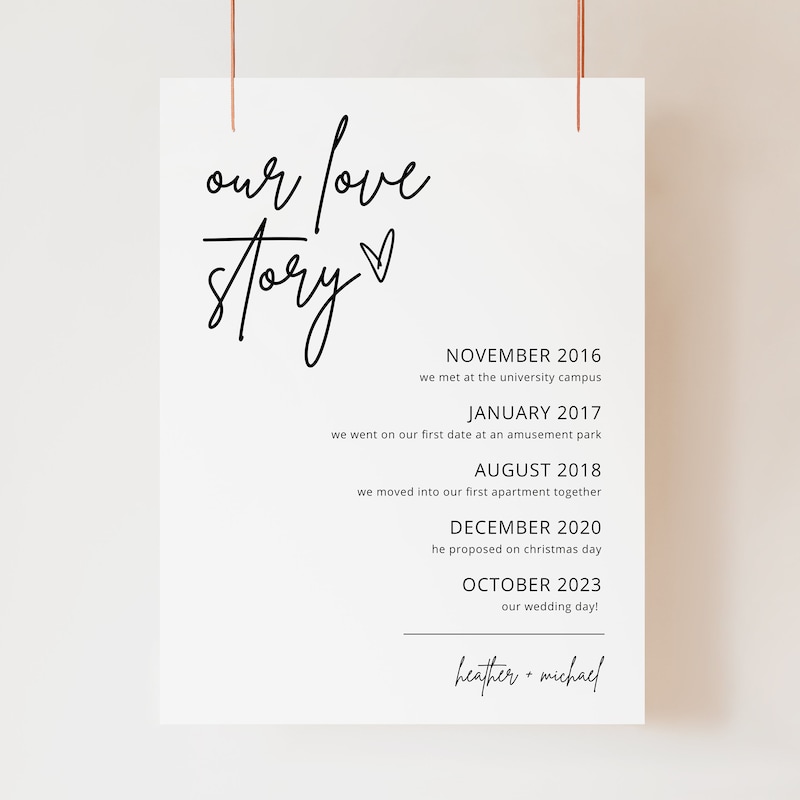 Our Love Story Printable Template Personalised Minimalist Love Story