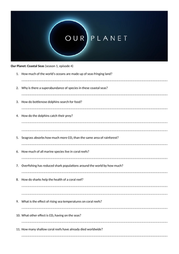 Our Planet Coastal Seas Documentary Worksheet by Oasis EdTech TPT