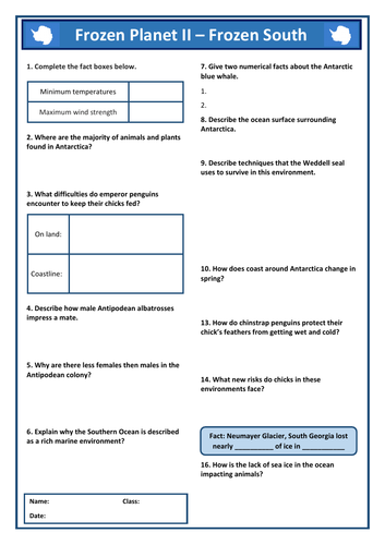 Frozen Planet 2 Episode 4: Frozen South Video Response Worksheet