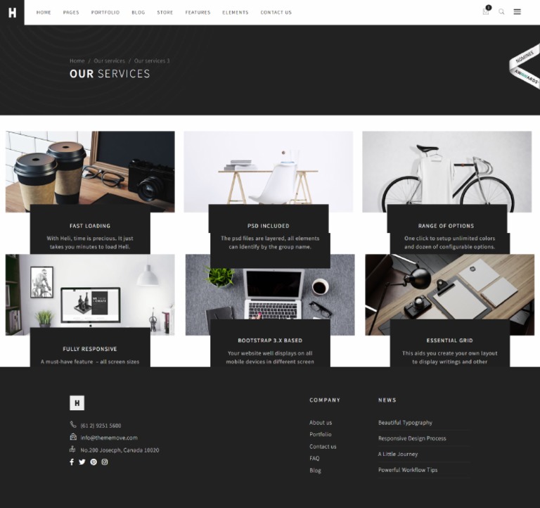 Bootstrap 4 our services page template Example