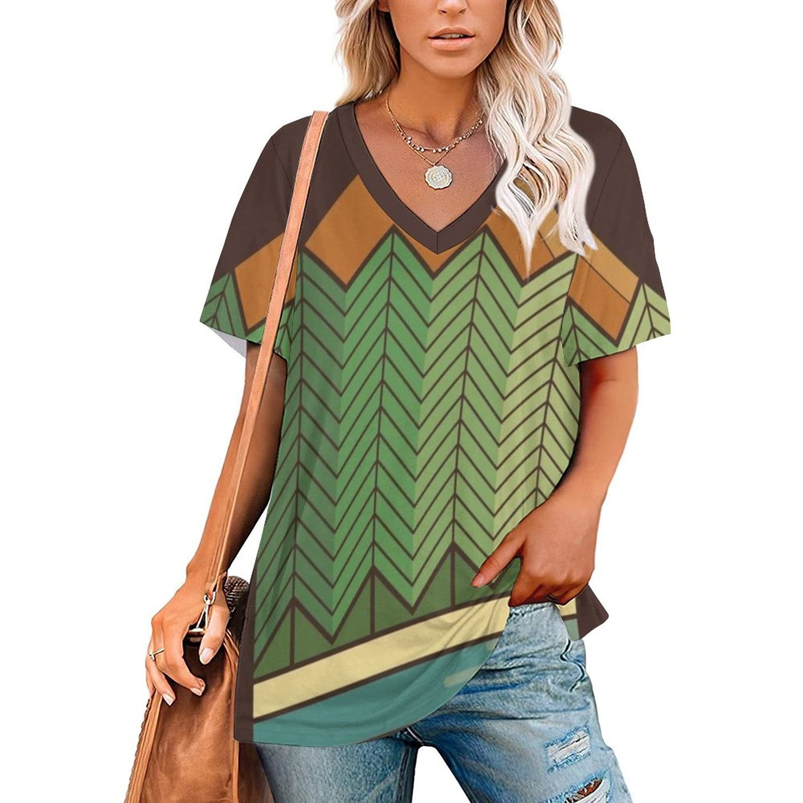 Drawing Mountains Women Short Sleeve Tops O Neck Hollow Out Shoulder