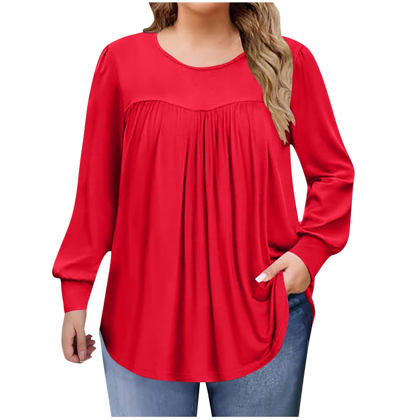 FAIWAD Womens Plus Size Tops Long Sleeve Pleated Dressy Going Out