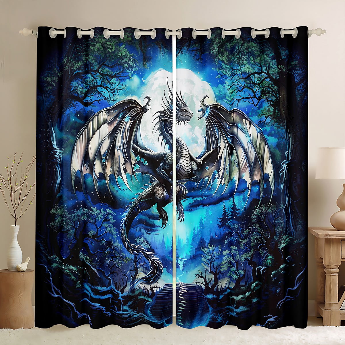 Feelyou Magical Dragon Curtains and Drapes for Boys Magic Animal Black