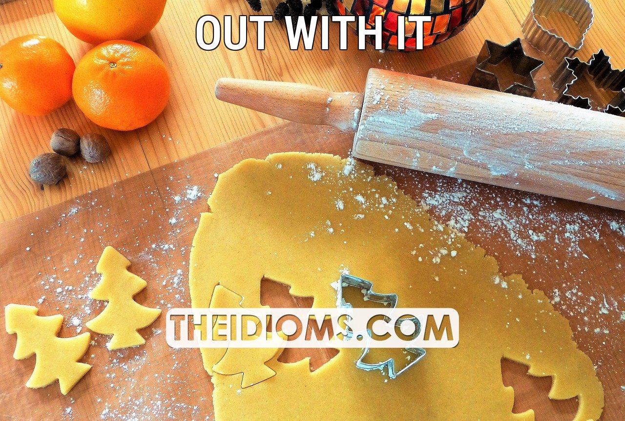 out with it meaning origin example sentence history