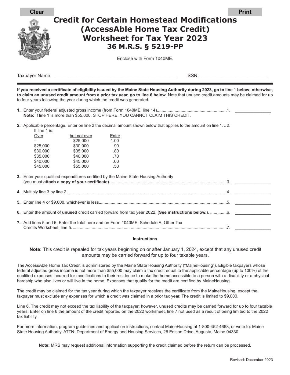 2023 Maine Credit for Certain Homestead Modifications (Accessable Home