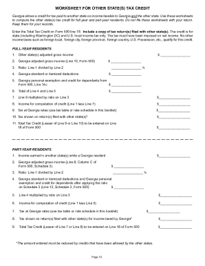 Fillable Online Georgia Other State Tax Credit Worksheet Fax Email