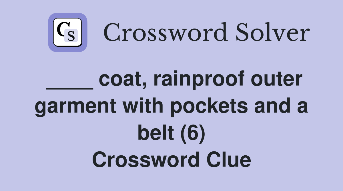 coat rainproof outer garment with pockets and a belt (6) Crossword