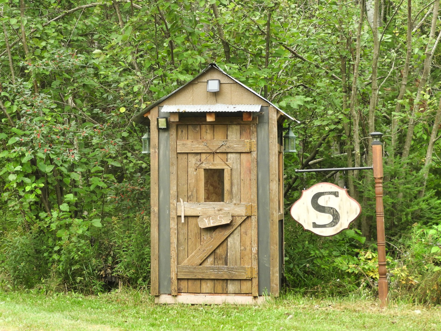 Old Outhouse In The Woods Path Outdoor Bathroom Photo Background And
