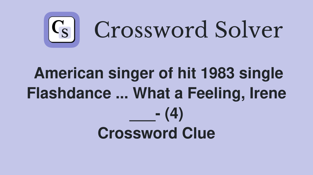 American singer of hit 1983 single Flashdance What a Feeling Irene