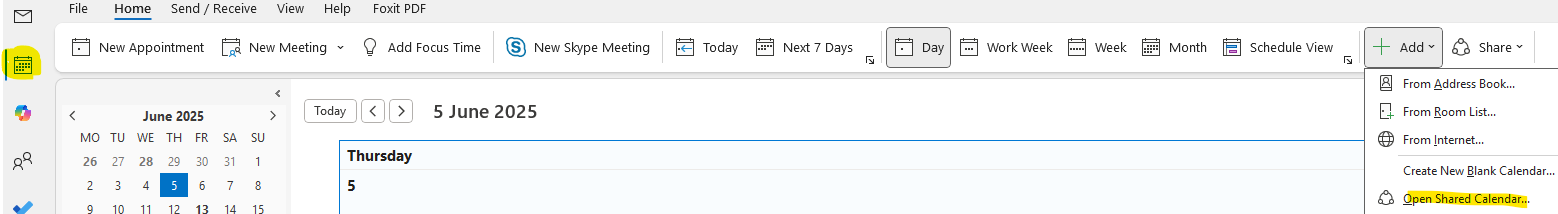 Add shared calendar in Outlook