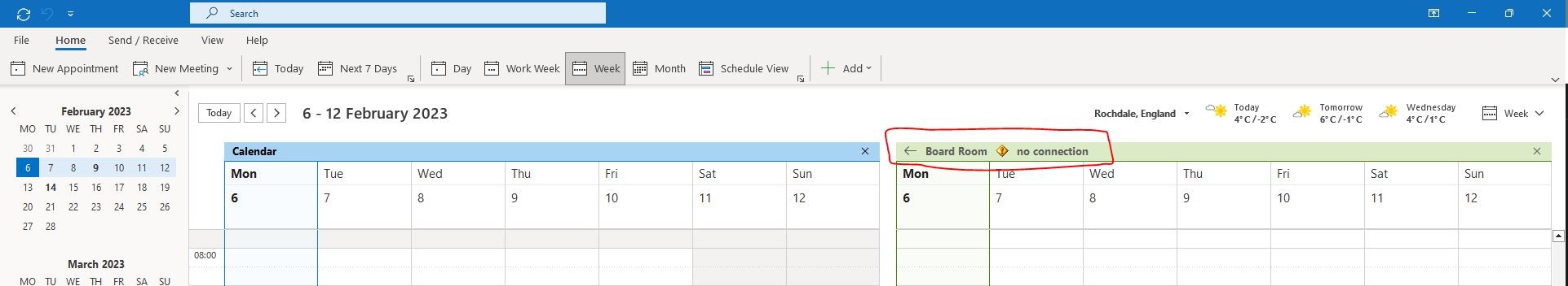 Outlook Calendar No Connection