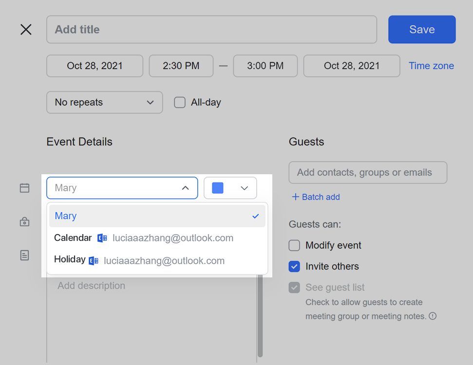 Perform a one way sync from Outlook to Feishu Calendar
