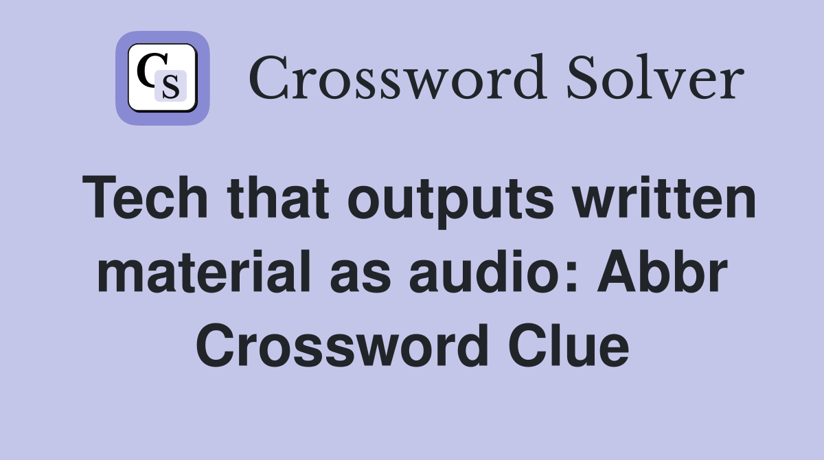 Tech that outputs written material as audio: Abbr Crossword Clue