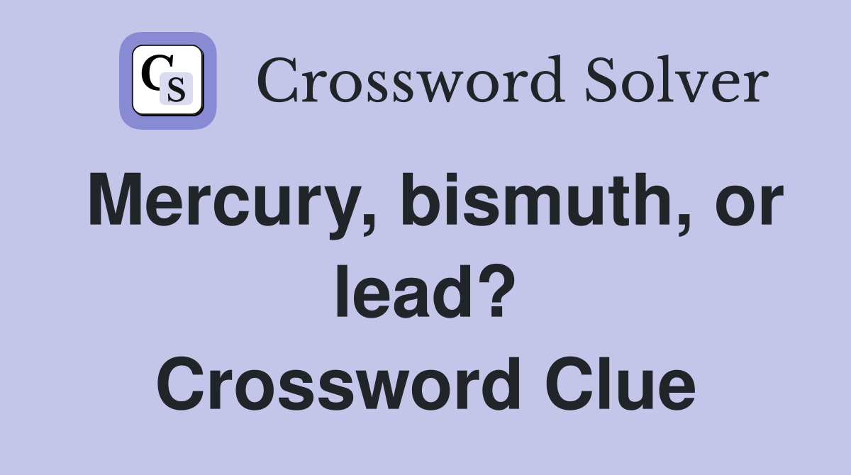 Mercury bismuth or lead? Crossword Clue Answers Crossword Solver