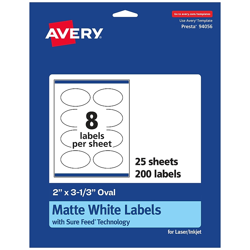 Avery Print to the Edge Laser/Inkjet Oval Labels 2 quot x 3 1/3 quot Textured