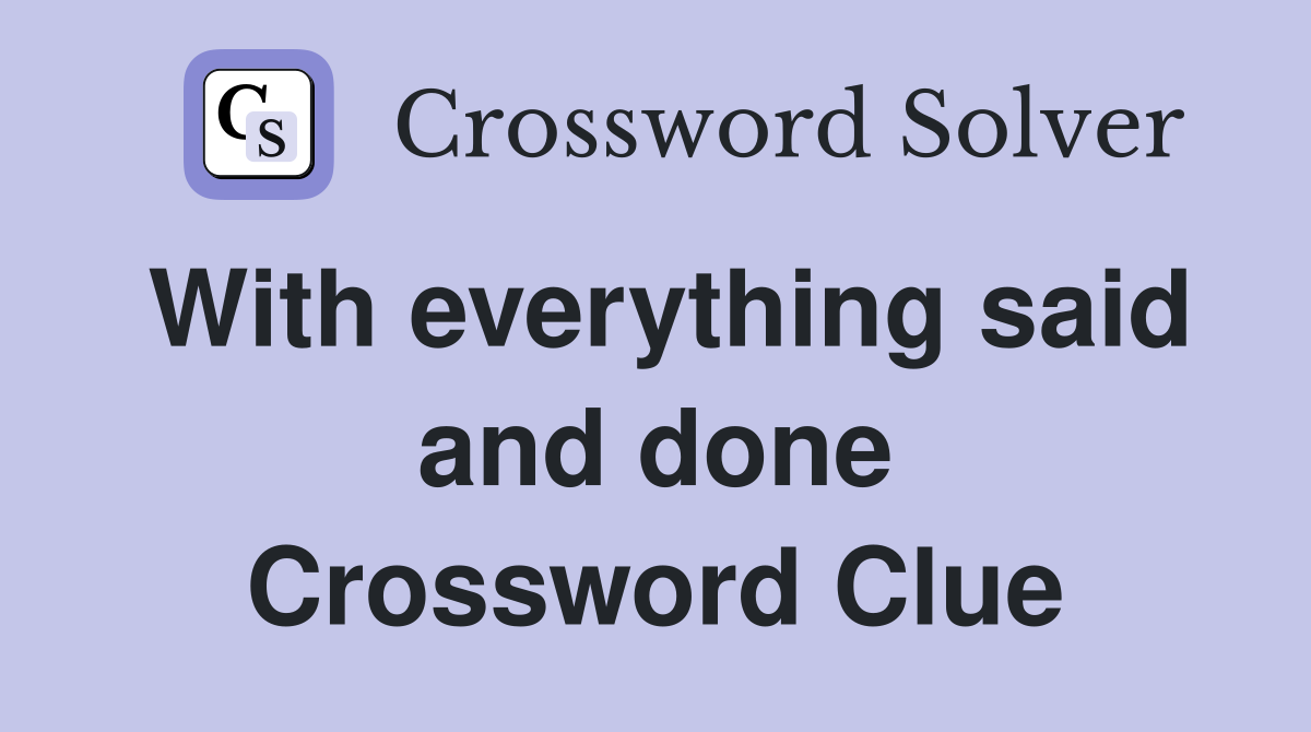 With everything said and done Crossword Clue Answers Crossword Solver