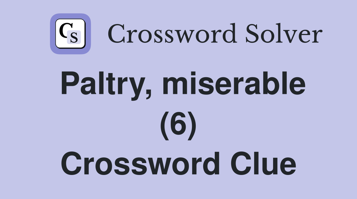 Paltry miserable (6) Crossword Clue Answers Crossword Solver