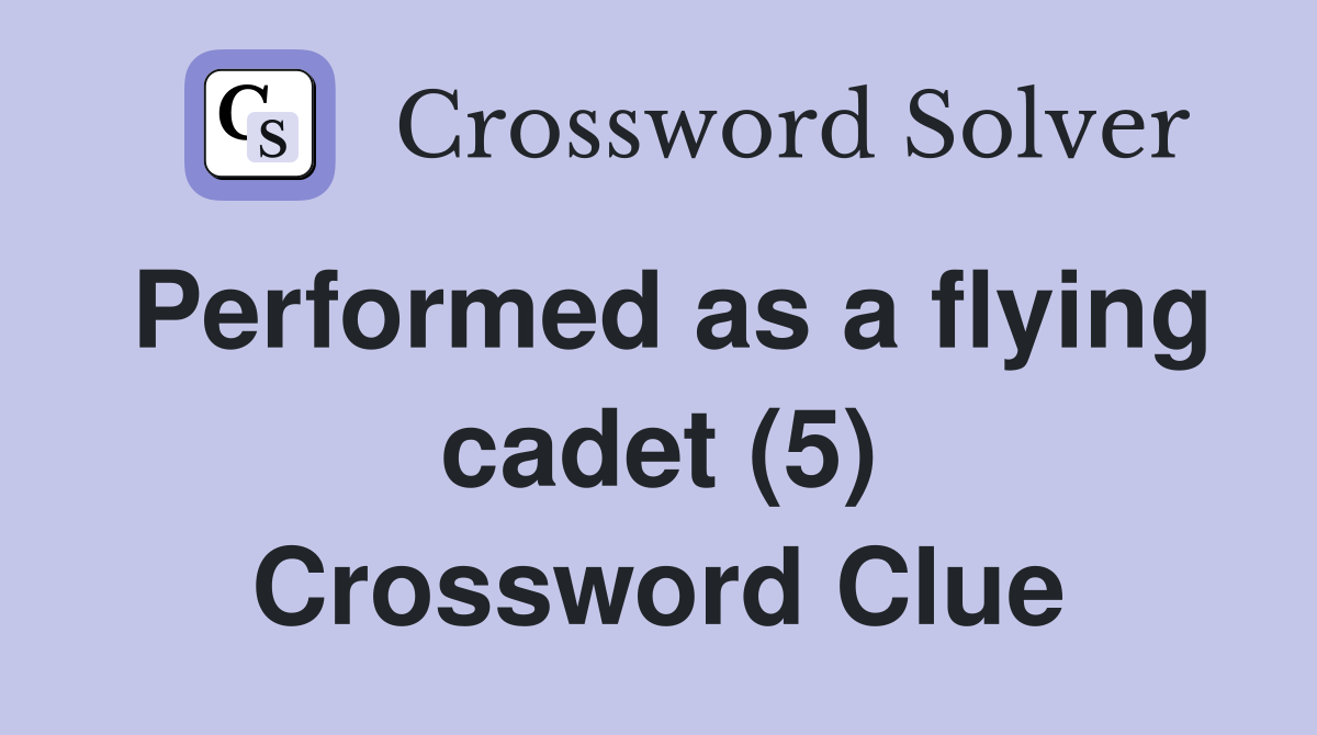 Performed as a flying cadet (5) Crossword Clue Answers Crossword Solver