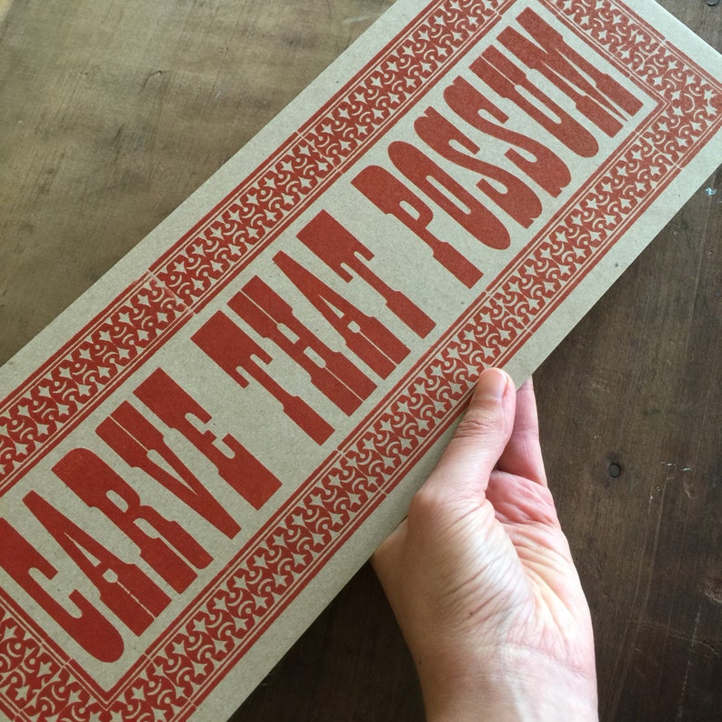CARVE THAT POSSUM Oversized Postcard Hand printed Etsy