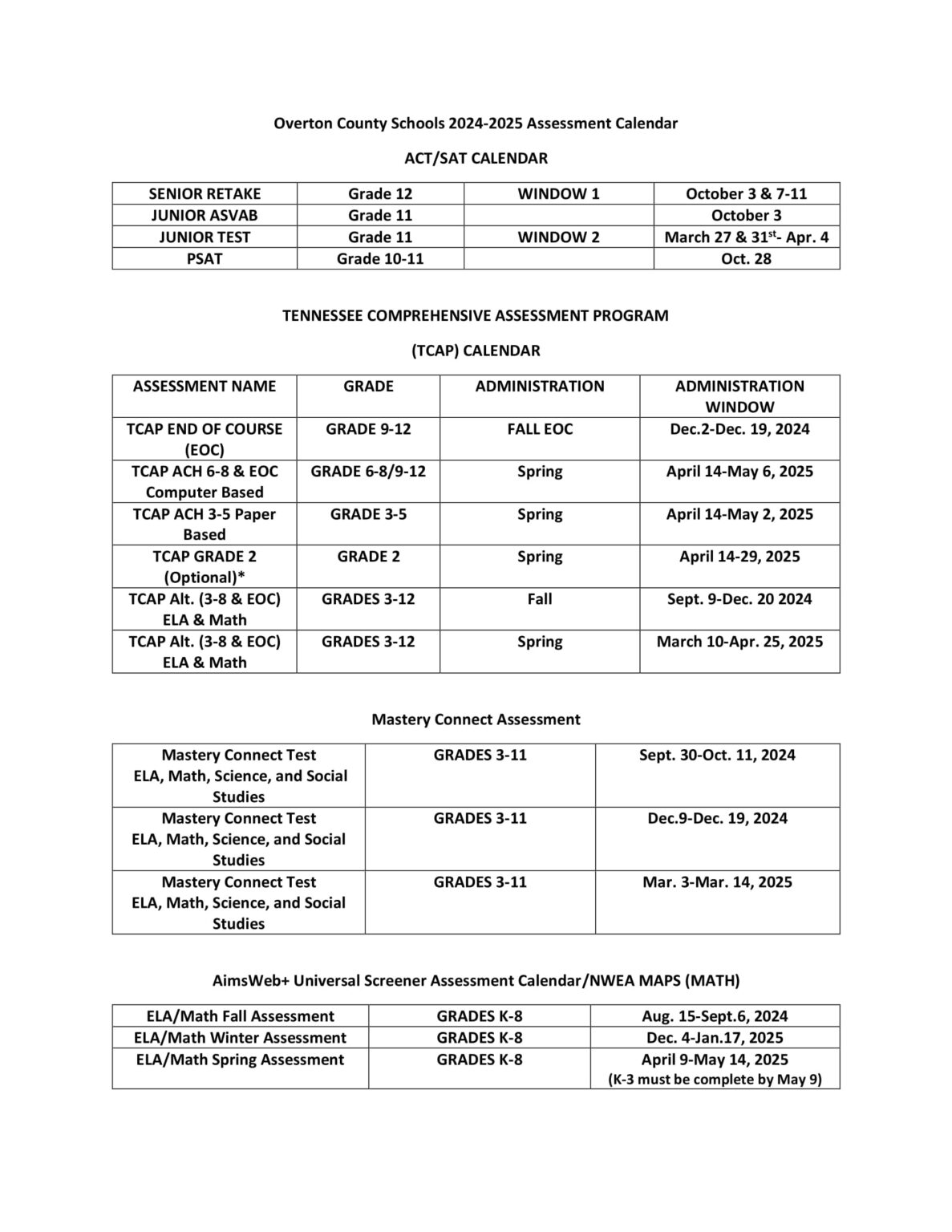 Overton County Schools Calendar 2025 Schoolcalendars net