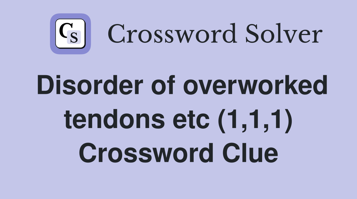 Disorder of overworked tendons etc (1 1 1) Crossword Clue Answers