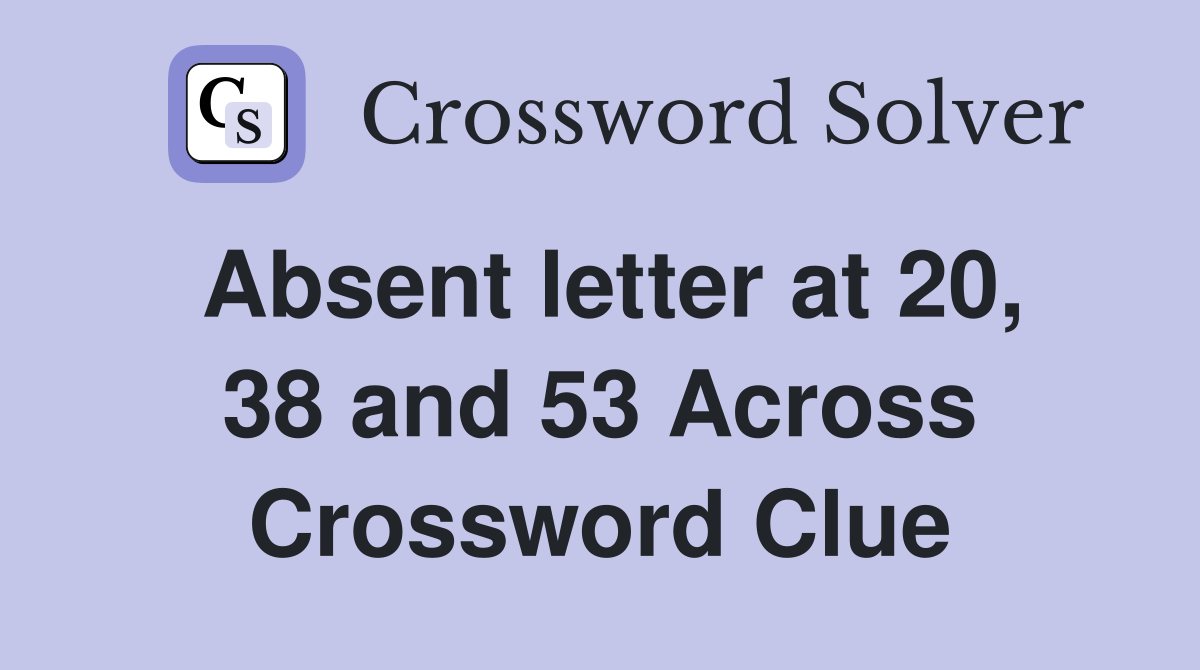 Absent letter at 20 38 and 53 Across Crossword Clue Answers