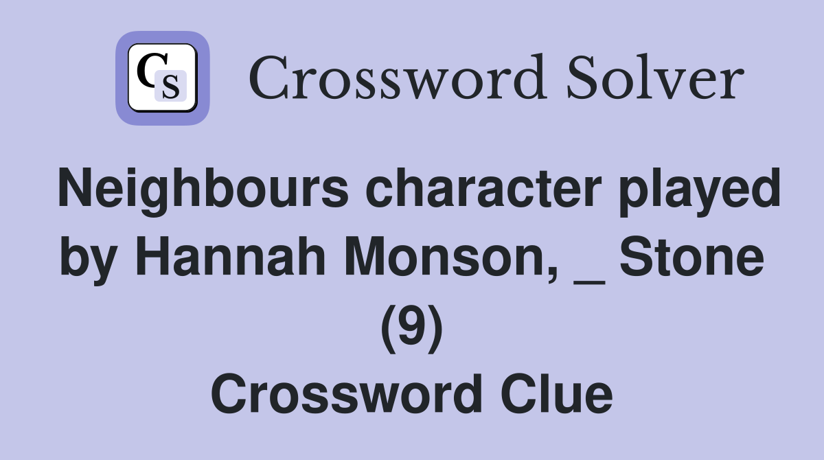 Neighbours character played by Hannah Monson Stone (9) Crossword