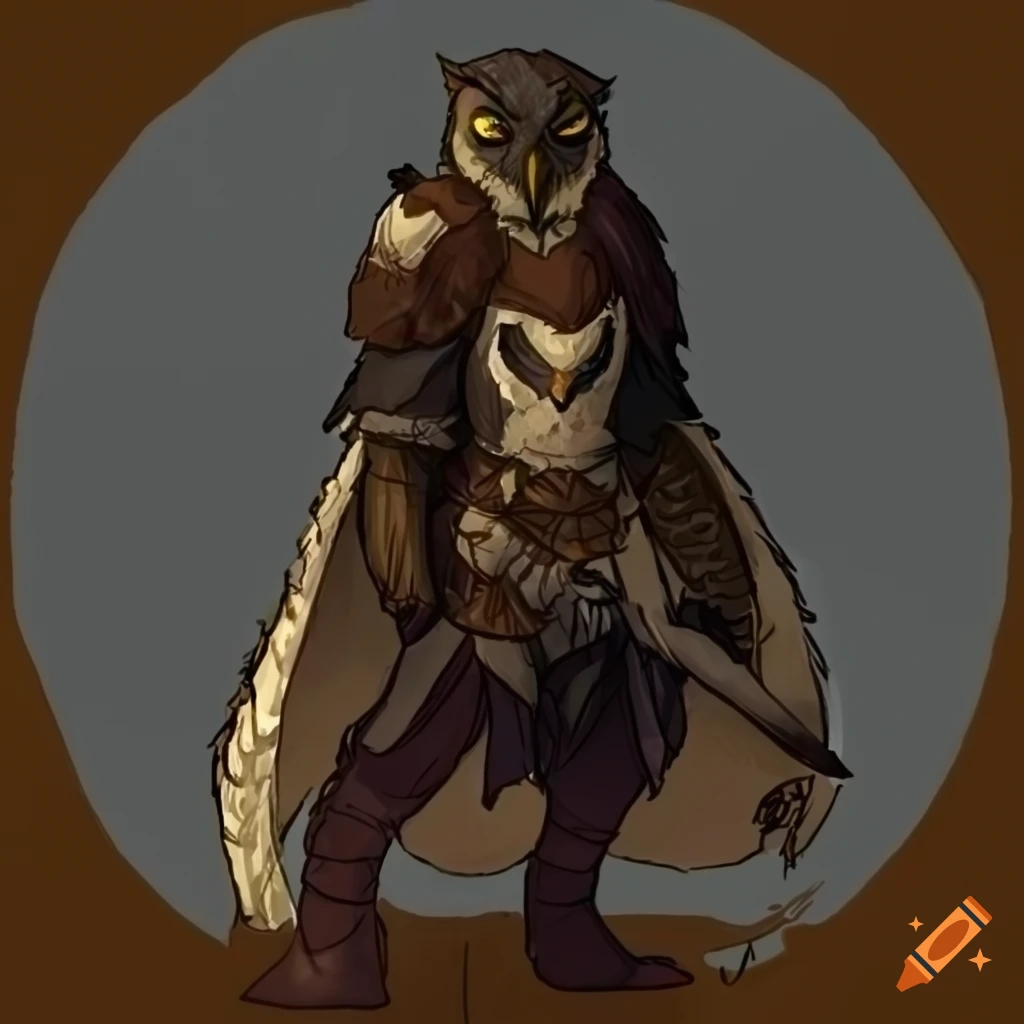 Epic high detailed owlfolk rogue character without armor on Craiyon
