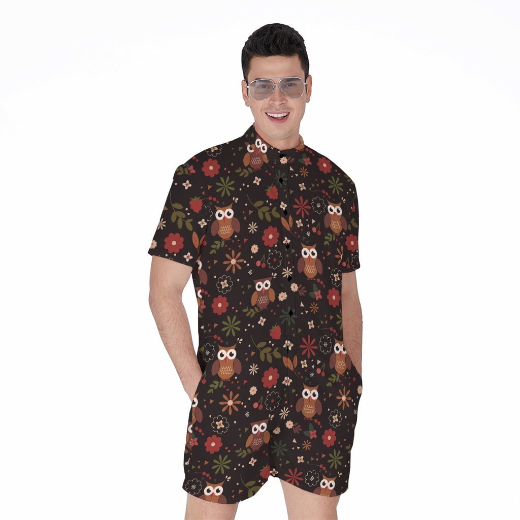 Cute Owl Short Sleeve Men #39 S Rompers Owl Bird Casual Summer Jumpsuits