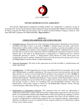 Fillable Online THIS OWNERS REPRESENTATIVE AGREEMENT (Agreement) is