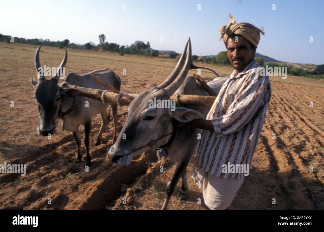 India Farmer ploughing with oxen Karnataka Stock Photo Alamy
